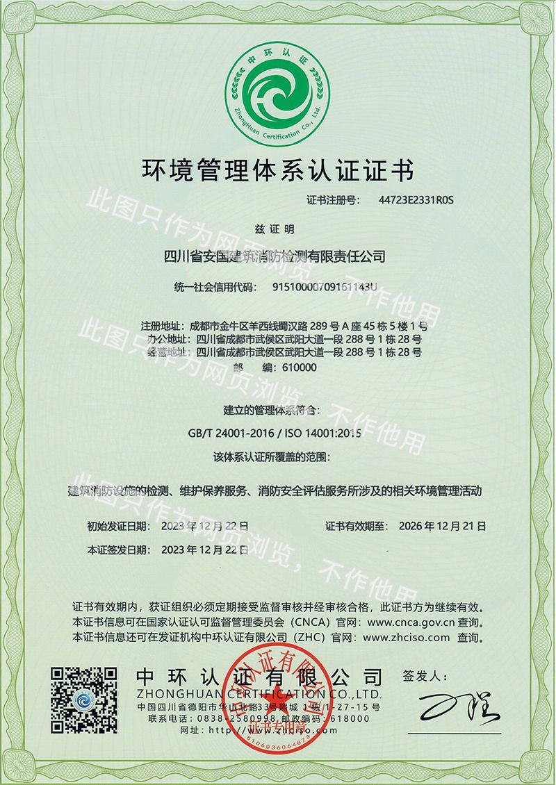 四川省安國建筑消防檢測有限責任公司 地址:成都市武陽大道一段288號中央花園城市別墅一期1棟28號